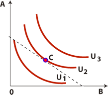 Потребительский выбор - выбор, максимизирующий функцию полезности рационального потребителя в условиях ограниченности денежного дохода. В положении равновесия потребитель должен одновременно максимизировать полезность потребления (находится на кривой безразличия) и полностью расходовать потребительский бюджет (находиться на линии бюджетного ограничения). Иными словами, положение равновесия потребителя – состояние, в котором он в рамках бюджетного ограничения максимизирует совокупную полезность.