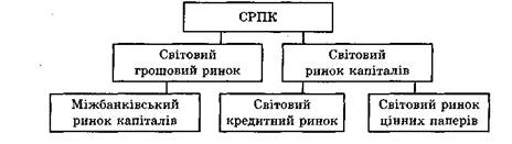 2. Світовий ринок позичкових капіталів Світовий ринок позичкового капіталу — це сукупність попиту та пропозиції на позичковий капітал позичальників та кредиторів різних країн. Головна мета СРПК — акумуляція і перерозподіл фінансових ресурсів за допомогою посередників. Виходячи з особливостей, які характеризують розвиток СРПК, у ньому виділяють 4 структури: 1) функціональну; 3) інституціональну; 4) географічну; 5) валютну. Перейдемо до розгляду кожної структури СРПК: І. Зміст функціональної структури СРПК розкривається у такій схемі: