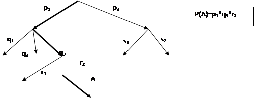 Обозначим через A событие, заключающееся в том, что случайно выбранный студент сдал экзамен. Этому событию на графе благоприятствуют три маршрута. Поэтому