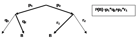 Обозначим через A событие, состоящее в том, что студент сдал экзамен. На графе вероятностей этому событию благоприятствуют два маршрута. Следовательно,