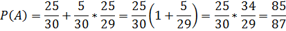 Пример. Студент пришел на экзамен, зная 25 из 30 билетов. Какова вероятность того, что он сдаст экзамен, если после отказа отвечать на билет ему предоставляется возможность вытянуть еще один? Решение: Построим размеченный вероятностный граф