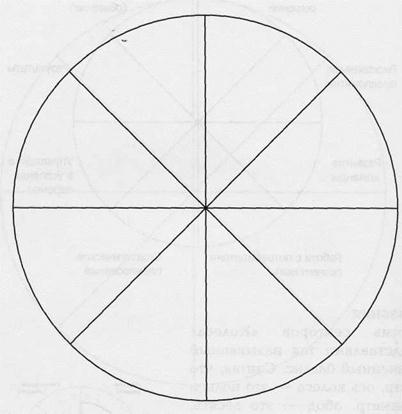 Указания Восемь секторов «Колеса» представляют так называемый жизненный баланс. Считая, что центр, ось колеса — это ноль, а периметр, обод — это десять, обозначьте уровень своей удовлетворенности каждой областью жизни на данный момент, проведя прямую или кривую линию. Тем самым Вы создадите новый периметр (обод) колеса своих собственных управленческих способностей (см. образец). Ну и как, насколько Вам удобно ехать на таком колесе, не кажется ли профессиональный путь ухабистым?