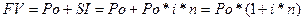 где SI - доход, рассчитанный по простому проценту, тыс. руб.; Ро — первоначальная (базовая, исходная) величина инвестиций (или принципал), тыс. руб.; i - процентная ставка (цена денег) за расчетный период, %; п — количество временных периодов, за которые начисляется простой процент на сумму первоначальной инвестиции. Будущую стоимость (FV) денег первоначального вклада можно определить по формуле: