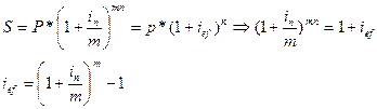 Сопоставление простых и сложных процентов осуществляется с помощью эффективной процентной ставки, эквивалентной для простой номинальной процентной ставки: