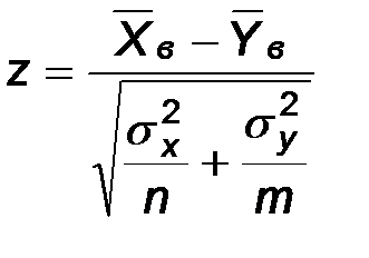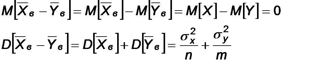 Проверка гипотезы о равенстве центров распределения двух нормальных генеральных совокупностей при известных дисперсиях. Пусть Х и Y – два наблюдаемых признака, подчиненных нормальному распределению. Будем считать, что дисперсии