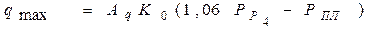 3. Начальный коэффициент приемистости скважины q0- приемистость агрегата, м3/сут; РПЛ - пластовое давление, МПа 4. Ожидаемое давление на забое во время проведения ГРП при четырехкратном росте приемистости tgß - тангенс угла наклона кривых изменения коэффициента приемистости. 5. Ожидаемое максимальное давление во время ГРП 6. Ожидаемые максимальные потери жидкости для ГРП