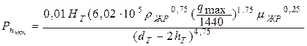 μЖ.Р .- вязкость жидкости разрыва, мПа∙с; d т - наружный диаметр труб НКТ, мм; hТ - толщина стенки труб НКТ, мм;
