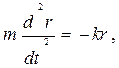 где m – масса шарика, а – его ускорение. Будем считать плоскость идеально гладкой (движение происходит без трения), пренебрежем сопротивлением воздуха и примем во внимание то, вес шарика уравновешивается реакцией плоскости. Единственная сила, действующая на шарик в направлении оси r, очевидно, сила упругости пружины. Определим ее, используя закон Гука, гласящий, что для растяжения (сжатия) пружины необходимо приложить силу F = - kr, Где коэффициент k > 0 характеризует упругие свойства пружины, а r – величину ее растяжения или сжатия относительно нейтрального, ненагруженного положения r = 0. Уравнение шарика принимает вид (уравнение элементарного осциллятора)