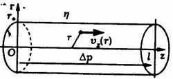 Технические системы, в которых происходит перемещение несжимаемой жидкости, принято называть гидравлическими. Зарубин стр. 110 Участок трубопровода. По аналогии с электрическими системами: разности электрических потенциалов (напряжений) соответствует разность (перепад) давлений ∆ р в гидравлической системе, силе тока в электрической системе соответствует объемный расход жидкости Q ж, измеряемые соответственно в паскалях и м3/с.Рис.3.16 стр.110 Постоянный расход идеальной жидкости. Для участка достаточно длинного трубопровода с круглым поперечным сечением радиуса R при установившемся ламинарном течении вязкой жидкости справедлива следующая зависимость скорости v z вдоль оси трубопровода от радиальной координаты r: v z = ∆ р (R 2 - r 2)/4 ηl,