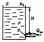 Объемный расход жидкости через трубопровод Q ж = Величину 8 ηl /π R 4 можно рассматривать как гидравлическое сопротивление R г = 8 ηl /π R 4 участка трубопровода длиной l. Тогда ∆ р = Q ж R г– аналог закона Ома ∆ U = IR. Уточнение модели: если поперечное сечение трубопровода не круглое, то гидравлическое сопротивление Rr будет зависеть от формы сечения, при увеличении объемного расхода жидкости через трубопровод (скорости потока) ламинарный режим течения переходит в турбулентный, и в этом случае гидравлическое сопротивление становится функцией Q ж – математическая модель оказывается нелинейной. Математические модели простейших элементов гидравлических и электрических подсистем совпадают. Комбинируя элементами гидравлических систем, как и в случае электрических систем, можно учесть, например, влияние вязкости жидкости. Применение электрогидравлической аналогии дает возможность для получения матмодели гидравлической системы применять детально разработанные и формализованные приемы построения электрических цепей. Цилиндрический сосуд. Рассмотрим цилиндрический сосуд с площадью поперечного сечения S, заполняемый и опорожняемый через трубопровод в нижнем плоском днище.