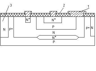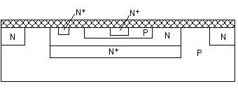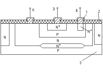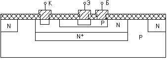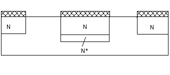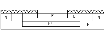 Послідовність виготовлення планарного NPN транзистора. Оксидування поверхні заготівлі (Si p-типу). Фотолітографія (розкриття вікон в оксиді). Дифузія домішок n-типу і повторне оксидування. Фотолітографія. Дифузія домішок p-типу і повторне оксидування. Фотолітографія. Дифузія домішок n-типу і повторне оксидування. Фотолітографія і формування виводів - напиленням плівки алюмінію (Al має добру адгезію з Si і SiO2). Після металізації (0.1 - 1 мкм) видаляється зайвий метал (травленням) і одержується необхідна форма контактних площадок. (Застосовується і напилення через маску). Недолік - Iк переборює довгу дільницю дна колекторної області (під дном бази), що має малі поперечні розміри. В дифузійному колекторі концентрація домішок розподілена нерівномірно: вона max на поверхні і min на дні колектора. Тому шар колектора під базою має високий опір, що збільшує напругу насичення і час переключення транзистора.
