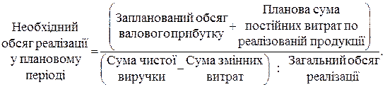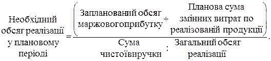У вартісному вимірі необхідний обсяг реалізації визначається таким чином: