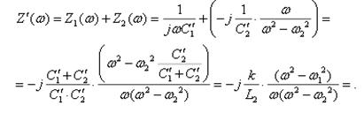 Существует четыре схемы реализации двухполюсника, заданного формулой (4), см. табл. 1. Выберем схему реализации (рис.5) разложением сопротивления Z'(ω) на простые дроби: