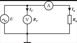 причем I > I'. В результате возрастает падение напряжения на внутреннем сопротивлении источника Ri и соответственно уменьшаются падение напряжения на резисторе R и показания вольтметра UV. Абсолютная методическая погрешность измерения, возникающая за счет шунтирования резистора R сопротивлением RV, равна