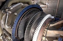 Принцип работы Газ под высоким давлением поступает через сопловой аппарат турбины в область низкого давления, при этом расширяясь и ускоряясь. Далее, поток газа попадает на рабочие лопатки турбины, отдавая им часть своей кинетической энергии и сообщая лопаткам крутящий момент. Рабочие лопатки передают крутящий момент через диски турбины на вал. Газовая турбина чаще всего используется как привод генераторов.