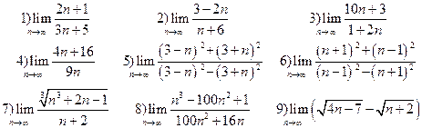 Пример 9. Вычислить предел Решение Пример 10. Вычислить предел Решение Пример 11. Вычислить предел Решение Содержание практической работы Задание 1. Вычислить пределы последовательностей: