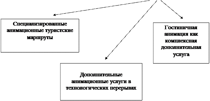 Различие толкований понятий "анимация", "гостиничная анимация", "туристская анимация" и т.д. связано с многообразием существующих форм и программ анимационной досуговой деятельности. Это разнообразие сказывается как при формировании туристских маршрутов и в гостиничном бизнесе, так и вообще в организации досуга людей в современной жизни: в странах, в городах, в городских управах и муниципалитетах, в парках, клубах и ассоциациях, в организациях и учебных заведениях. Поэтому можно говорить о городских и муниципальных, клубных и парковых, производственных и школьных анимационных программах - детских, юношеских, студенческих, для пенсионеров, для семей, для инвалидов, для национальных меньшинств и т.д. Здесь мы будем говорить о туристской, рекреационной и гостиничной анимации, поэтому разграничим эти понятия (рис. 1.2.).
