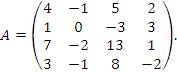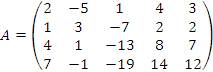 Решение. Для получения максимально возможного числа нулей в первом столбце этой матрицы, прибавим вторую строку к первой, третьей и четвертой строкам соответственно с коэффициентами (–2), (–4) и (–3):