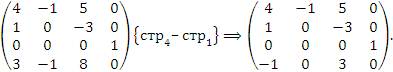 Далее из четвертой строки вычтем первую строку и затем к полученной строке прибавим вторую: