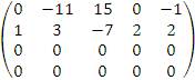 Если теперь прибавить третью строку, умноженную на (–2), (–3) и 2, соответственно, к другим строкам, то в четвертом столбце возникает максимально возможное число нулей: