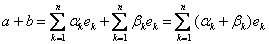 Определение 1. Базисом линейного пространства L называется система элементов принадлежащих L, удовлетворяющая двум условиям: 1) система 2) Любой элемент L линейно выражается через базисные (т.е. является линейной комбинацией элементов Примеры. Базис на плоскости (V2 – 2 неколлинеарных вектора), в пространстве (V3 – 3 некомпланарных вектора), в пространстве Rn (канонический базис), в пространстве многочленов степени ≤ n - (1,х,х2,…,хn). Теорема 1. Коэффициенты разложения по базису – единственны. {Пусть Определение 2. Координатами элемента линейного пространства в некотором базисе называются коэффициенты разложения по этому базису. (В силу т. 1 это определение – корректно) Будем писать: В дальнейшем, по умолчанию, будем считать вектор вектором – столбцом, в противном случае будем писать строку координат в явном виде: Теорема 2. При сложении векторов их координаты складываются: { Теорема 3. При умножении вектора на число его координаты умножаются на это число: λа = (λα1,…,λαn). { Определение 3. Размерностью линейного пространства L (обозначается dim L) называется максимальное число линейно независимых элементов этого пространства. Если такого числа не существует – пространство называется бесконечномерным. Теорема 4. Размерность линейного пространства равна числу базисных векторов. {Пусть dimL = n } Отсюда, в частности, следует, что все базисы одного пространства состоят из одинакового числа векторов. Примеры. V2, V3, Rn.
