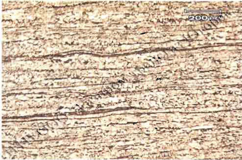 Рисунок 4 - Структура металла трубной стали с ликвационными зонами (полосами), 200х Закат - дефект в виде нарушения сплошности поверхности в направлении прокатки. Общий вид заката показан на рисунке 5.