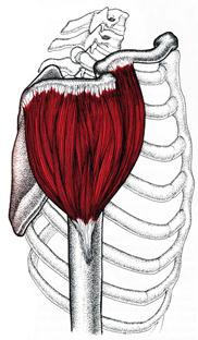 Рис. 3.18 Прикрепления большой круглой мышцы (J.Travel & D.Simons, 1999).