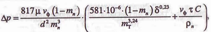 для фильтров с импульсивной продувкой К = К0 + К1 + К2 (5.49) В уравнениях (5.49) и (5.50): К0 — коэффициент сопротивления ткани после регенерации; К1 — коэффициент сопротивления свежеотложенного слоя пыли; К2 — коэффициент сопротивления повторно отложенного слоя пыли. Последние определяют по результатам лабораторных и опытно-промышленных исследований модели фильтра на конкретном промышленном объекте. В этом случае по формуле (5.48) можно определить значение удельной газовой нагрузки при выбранном гидравлическом сопротивлении. В некоторых источниках приводятся формулы по определению гидравлического сопротивления в рабочем (запыленном) состоянии: