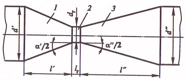 Рис. 5.82. Нормализованная труба Вентури: 1 — конфузор; 2 — горловина; 3 — диффузор