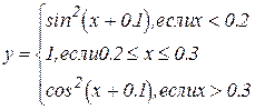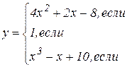 2.1. Цели лабораторной работы: Изучить последовательность написания программ с разветвляющейся структурой на алгоритмическом языке (Basic) и структуру линейного и блочного оператора IF. 2.2. Постановка задачи: В соответствии с заданием лабораторной работы №2 разработать программы с линейной и разветвляющейся структурой для нахождения заданной функции. 2.3. Порядок выполнения работы: 2.3.1. Ознакомиться с теоретической частью. 2.3.2. Получить задание у преподавателя. 2.3.3. Выполнить работу. 2.3.4. Оформить отчет: 2.3.4.1. Содержание отчета: 1. Цель работы - краткая формулировка поставленной цели. 2. Порядок выполнения - определяются действия, необходимые для выполнения данной работы. 3. Постановка задачи - формулирование задачи в соответствии с индивидуальным заданием. 4. Решение поставленной задачи: 4.1. Математическое описание решения поставленной задачи содержит описание связей между параметрами с использованием принятых в математике обозначений. 4.2. Описание логической структуры программы (алгоритм решения) содержит: - краткое описание схемы программы, - алгоритм решения (по ГОСТ) - рисунок, - краткое описание используемых операторов языка программирования: IF (строчная и блочная формы) (при необходимости SELECT CASE). 4.3. Описание программы содержит: - название файла, его размер, - текст программы без комментариев (или фрагмент для решения конкретной, наиболее важной части задания). 4.4. Результат работы программы: - значения, полученные в результате выполнения программы - анализ полученных результатов. Выводы - отвечают на поставленную цель.