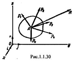 Таким образом, для сходящихся сил в пространстве имеем следующие три уравнения равновесия