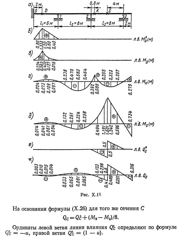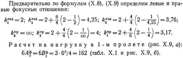 Б). Методом фокусов. Трехпролетную балку с размерами и жесткостью, такими же, как в примере Х.1, рассчитать методом фокусов на