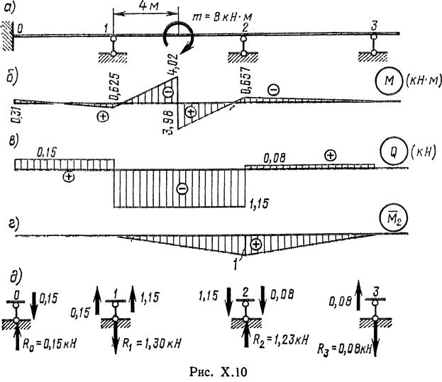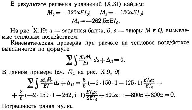 Д). Трехпролетиую балку с размерами и жесткостью, такими же, как в примере Х.1, рассчитать на тепловое воздействие.