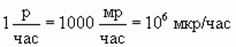 На практике за единицу времени могут приниматься час, сутки, год. Для упрощенной оценки информации по однотипному ионизирующему излучению можно использовать следующие соотношения. 1. 1 Гр = 100 бэр = 100 Р = 100 рад = 1 Зв (с точностью до 10-15%); 2. радиоактивное загрязнение плотностью 1 Ки/м2 эквивалентно мощности экспозиционной дозы 10 Р/ч, или мощность экспозиционной дозы ионизирующего излучения 1 Р/ч соответствует загрязнению в 10 мкКи/см2. 3. Соотношения между наиболее часто встречающимися единицами измерений: