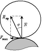 де безрозмірний коефіцієнт 4. Коефіцієнт тертя ковзання залежить від матеріалу і фізичного стану поверхонь, що труться, тобто від величини і характеру шорсткості, вологості, температури та інших умов. Коефіцієнт тертя встановлюється експериментально. Вважається, що коефіцієнт тертя не залежить від швидкості руху. Кут тертя. Умови рівноваги Багато завдань на рівновагу тіла на шорсткій поверхні, тобто за наявності тертя, зручно вирішувати геометрично. Для цього введемо поняття кута і конуса тертя. Реакція реальної (шорсткої) в'язі