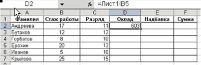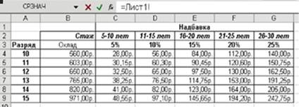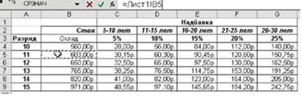 Рис. 4 Щелкните указателем мыши на ячейке со значением оклада 11-разряда. В строке формул появилась ссылка на эту ячейку рис.5.