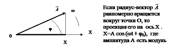 II. Основные законы теории колебаний и волн. Гармонические колебания – колебания, происходящие по гармоническому закону (закону синуса или косинуса). Х = А sin (ωt + φ0). (1) В уравнении 1: А - амплитуда колебаний; (ωt + φ0) – фаза колебаний; φ0- начальная фаза; ω – круговая (циклическая) частота.