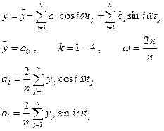 Для временного ряда, имеющего тенденцию, ряд Фурье следует применять не к исходным уровням динамического ряда yj, а к разностям yj – yj~, где yj~ - значение, полученное в результате выравнивания исходных значений yj либо по линейному тренду yj~=atj+b, либо методом скользящей средней величины с периодом скольжения, равным году (4 квартала или 12 месяцев)
