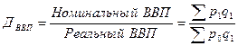 Числитель- ВВП анализируемого периода, знаменатель- ВВП в ценах базисного периода. Или ДВВП = IM*IV / IQ, где IM – индекс изменения денежной массы (M2 или M3), IV – индекс изменения скорости обращения денег, IQ – индекс изменения товарной массы.