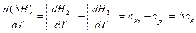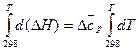 Уравнение (17) называют уравнением Кирхгофа, где Δср – это разность молярных теплоёмкостей продуктов реакции и исходных веществ с учётом стехиометрических коэффициентов. Для вычисления теплового эффекта при заданной температуре Т, необходимо проинтегрировать уравнение Кирхгофа: