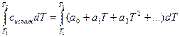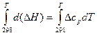ΔНТ = ΔН В широком диапазоне температур зависимость теплоёмкости веществ от температуры выражается в виде эмпирических уравнений: ср = a + bT + Коэффициенты a, b, c, c' для продуктов реакции и исходных веществ приводятся в справочниках, далее вычисляют Δ a, Δ b, Δ c, Δ c' как суммы соответствующих величин для продуктов реакции, умноженные на стехиометрические коэффициенты минус соответствующие значения для исходных веществ. Затем зависимость Δ ср = Δ a + Δ bT + подставляются под знак интеграла в уравнение (19) и производится расчёт ΔНТ по правилам интегрирования. При использовании табличных значений средних теплоемкостей