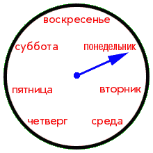 Существует противопоставление, которое следует выделить особо: естественный и искусственный. Пусть малыш отметит, что именно вокруг него естественное, природное, а что сделано руками человека. Для него нужен...? Спросите у ребенка, например, "для чего нужен рот?" Возможные ответы: "Для того, чтобы есть, пить, говорить, смеяться, улыбаться, кусать". Или: "Что делает птица, автомобиль, кран?" Родственные связи (на примере вашей семьи). Объясните малышу термины родства. Задавайте ему при этом шуточные вопросы: "Кто твой дядя?.. А кто брат твоего отца?.. Конечно! Это один и тот же человек!" Затем предложите ему обнаружить те же связи в знакомых семьях или среди героев книги. Календарь. Познакомьте ребенка с днями недели. Можно попытаться пропеть подряд названия дней недели на какой-нибудь подходящий мотив[32]. Приколите на стене в детской комнате таблицу с названиями дней недели и каждый раз, поднимая ребенка утром с постели, показывайте ему, какой сегодня день. Можно также сделать своего рода циферблат с названиями дней недели, и тогда малыш сможет сам переводить стрелку на нужный день.
