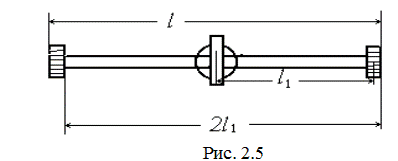 где: I в - момент инерции втулки; I ш - момент инерции шкива; I сп- момент инерции спицы; I гр - момент инерции одного груза 3. (Разумеется, все эти моменты инерции в данном случае берутся тоже относительно оси вращения.) Так как где l и m пс- общая длина (рис.2.5) и масса двух спиц, а для случая, когда грузы 3 находятся на концах спиц, I гр = m гр l 12 (груз - материальная точка), где l 1- расстояние от центра масс груза до оси, а m гр - масса груза 3, то
