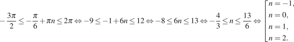 б) Ясно, что в заданный промежуток попадают корни: