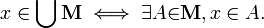 що відповідає операції об'єднання колекції множин { Ai: i в I }. Тут I — множина, а Ai — множина для кожного i в I. В цьому випадку I є множиною індексів (натуральних чисел), і нотація є аналогічною узагальненій операції сумування: