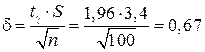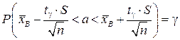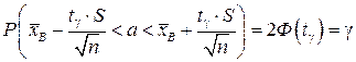 согласно которому можно утверждать, что с надёжностью у доверительный интервал Поскольку n = 100 > 30, то пользуемся нормальным распределением. Значит, Из равенства 2Ф(tγ) = 0,95 следует Ф(tγ) = 0,475 и по таблице 3 приложения находим1,96. Следовательно, точность оценки