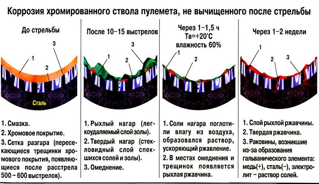 Прочностью стволаназывается способность его стенок выдерживать определенное давление пороховых газов в канале ствола. Так как давление газов в канале ствола при выстреле не одинаково на всем его протяжении, стенки ствола делаются разной толщины – толще в казенной части и тоньше к дульной. При этом стволы изготавливаются такой толщины, чтобы они могли выдержать давление, в1,3-1,5 раза превышающее наибольшее. Если давление газов почему-либо превысит величину, на которую рассчитана прочность ствола, то может произойти раздутие или разрыв ствола. Раздутие ствола может произойти в большинстве случаев от попадания в ствол посторонних предметов (пакля, ветошь, песок) (рис.3). При движении по каналу ствола пуля, встретив посторонний предмет, замедляет движение и поэтому запульное пространство увеличивается медленнее, чем при нормальном выстреле. Но так как горение порохового заряда продолжается и приток газов интенсивно увеличивается, в месте замедления движения пули создается повышенное давление; когда давление превзойдет величину, на которую рассчитана прочность ствола, получается раздутие, а иногда и разрыв ствола. Чтобы не допустить раздутия или разрыва ствола, следует всегда оберегать канал ствола от попадания внего посторонних предметов, перед стрельбой обязательно осмотреть и, если необходимо, вычистить его. При длительной эксплуатации оружия, а также при недостаточно тщательной подготовке его к стрельбе может образоваться увеличенный зазор между затвором и стволом, который позволяет при выстреле двигаться гильзе назад. Но так как стенки гильзы под давлением газов плотно прижаты к патроннику и сила трения препятствует движению гильзы, она растягивается и, если зазор велик, рвется; происходит так называемый поперечный разрыв гильзы. Для того чтобы избежать разрывов гильз, необходимо при подготовке оружия к стрельбе проверить величину зазора (у оружия, имеющего регуляторы зазора), содержать патронник в чистоте и не применять для стрельбы загрязненные патроны. Живучестью ствола называется способность ствола выдержать определенное количество выстрелов, после которого он изнашивается и теряет свои качества (значительно увеличивается разброс пуль, уменьшается начальная скорость и устойчивость полета пуль). Живучесть хромированных стволов стрелкового оружия достигает 20-30 тыс. выстрелов. Увеличение живучести ствола достигается правильным уходом за оружием и соблюдением режима огня. Пример: Ресурс стволов (количество выстрелов): · 5,45-7,62-мм АК-74, АК – 10000 – 12000 · 7,62-мм СВД, СВ – 6000 · 5,45-7,62-мм РПК – 12000 – 20000 · 9-мм пистолеты – 4000 · 7,62-мм ПКТ, ПКМ – 15000 – 17500 · РПГ-7/СПГ-9М – 250/500