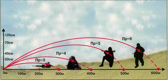 Рис.8 Прямой выстрел иокругленные дальности прямого выстрела из стрелкового оружия калибра 5,45 - 7,62 мм