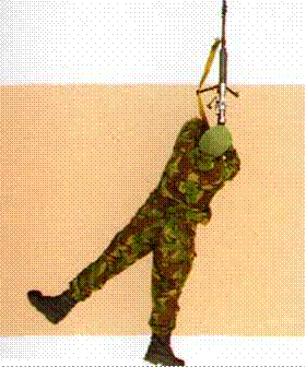 Стандартное положение Спортивное положение Левая рука, воспринимающая всю тяжесть оружия, согнута в локтевом суставе и вынесена как можно дальше вперед (для большей устойчивости). Локоть ставится чуть левее плоскости стрельбы, приблизительно под винтовку (а). Кисть согнута в запястье так, чтобы ствольные накладки (цевье) лежали на ладони ближе к большому пальцу. Приклад без усилия и все время однообразно упирается в правую часть груди (в область грудной и дельтовидной мышц). Голову следует держать по возможности прямо, избегая наклона вправо или вниз, чтобы не косить глазом и смотреть исподлобья. Если стрелок тянется ближе к прицелу или чрезмерно откидывает голову назад возникает напряжение мышц шеи, что нарушает устойчивость оружия. Правая рука не должна служить существенным упором, ее кисть охватывает рукоятку приклада (шейкуложи). Указательный палец наложен на спусковой крючок ногтевой фалангой (ближе к сгибу) или сгибом и не прикасается к спусковой скобе или ствольной коробке. Охватив кистью рукоятку приклада, локоть правой руки опускают на землю свободным и естественным движением. Не следует приближать локоть к туловищу или с напряжением отводить его, что затрудняет работу указательного пальца при нажатии на спусковой крючок. Кроме способа удержания винтовки за ствольные накладки (цевье) снайпер может использовать и другие: · за приклад снизу, когда приклад укладывается в вилку, образованную большим и указательным пальцами, · четыре пальца плотно прижаты к прикладу; · за приклад снизу - приклад укладывается в вилку, а четыре пальца прижаты к плечевой части правой руки; · за приклад снизу в обхват; · за магазин.