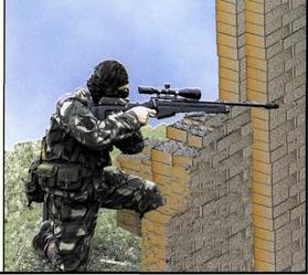 Жесткий упор способствует маскировке и создает укрытие от наблюдения и огня противника, рекомендуется укладывать на ладонь руки, валик, на мягкий материал, покрывающий упор.